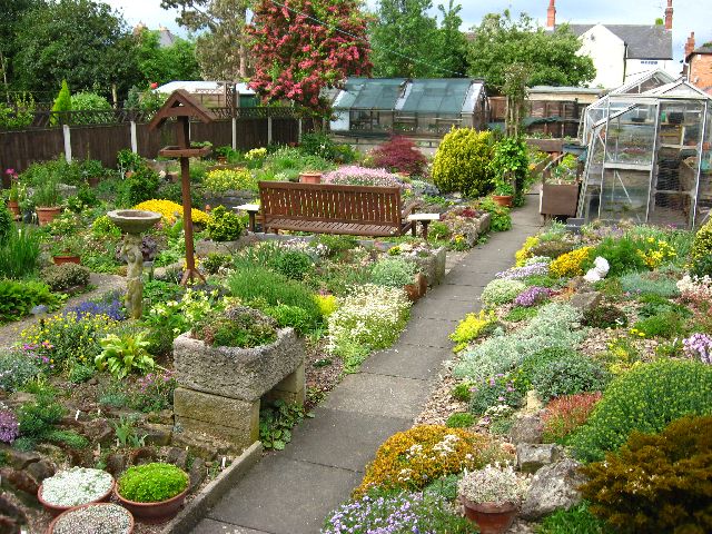 A relatively small garden with well stocked screes, tufa mound,and troughs